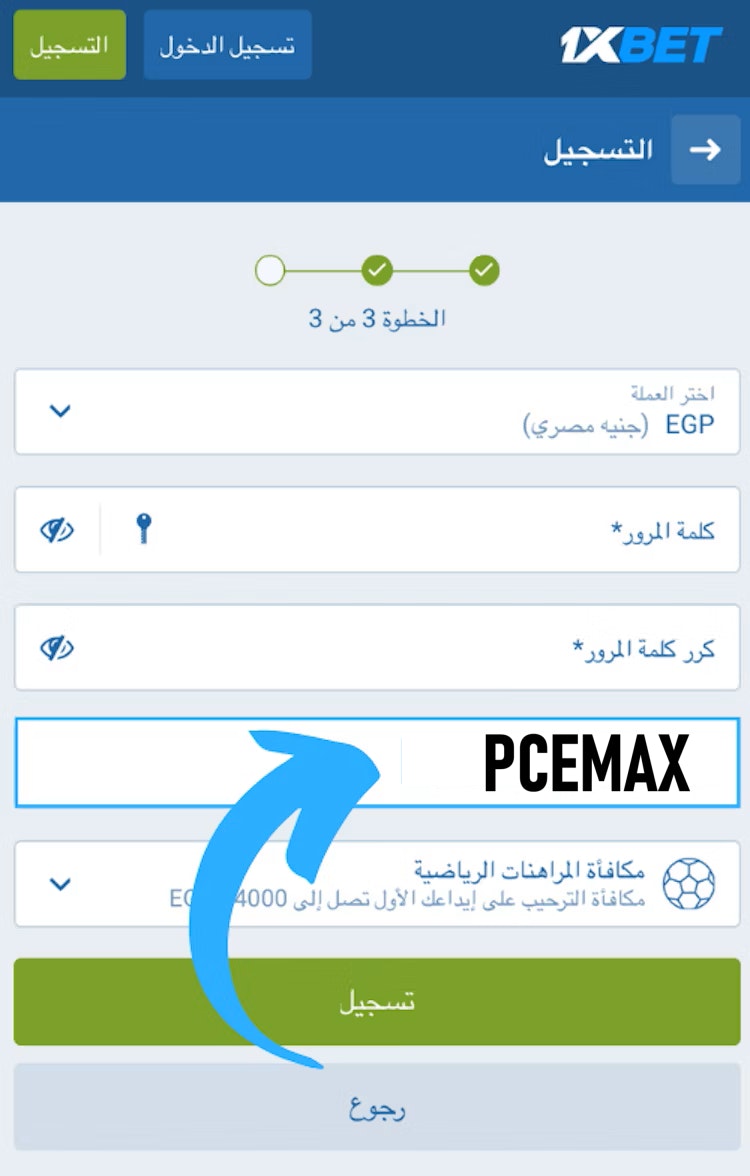 إذا نسيت ادخال الكود PCEMAX في مرحلة التسجيل في 1 اكسبت الأصلي في مصر، لن يكون هناك مشكلة كبيرة وستتمكن من تفعيل مكافأة الرمز الترويجي 1xbet promo code 2025. إليك الطريقة لحل المشكلة: